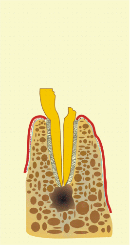 Анимирана схема на механичната обработка на кореновия канал. Всеки следващ каналоразширител или пила е с по-голям диаметър от предишния. Така каналът се разширява постепенно и при наличие на периапикално огнище на възпаление се получава достъп до него - което в повечето случаи е безсмислено, тъй като доброто почистване на канала и премахването на разпаднатите материи в него води до оздравяване на лезията в много голям процент от случаите.