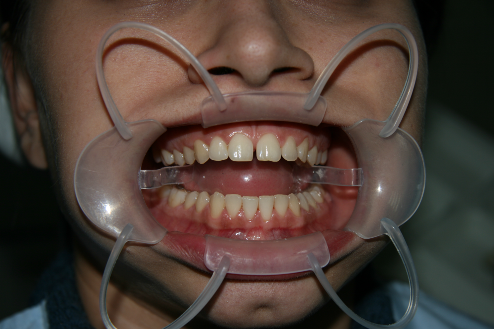 Поставен е усторазтворител. Той служи за предпазване на устните и лигавицата на бузите от действието на избелващата система.