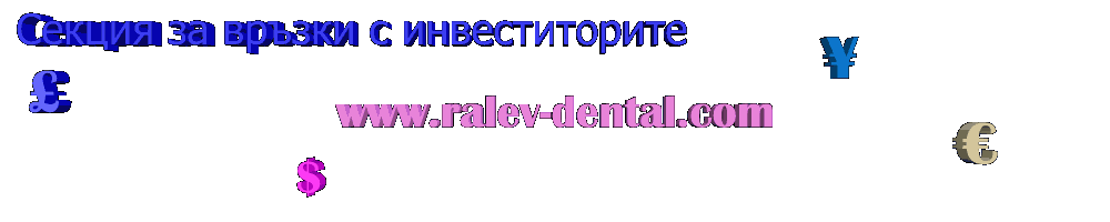 Отделът за връзки с инвеститорите на Ралев Дентал АД се намира на адрес www.ralev-dental.biz. Там ще намерите още по-детайлна информация за дейността на дружеството. След приключване на още няколко финансови години ще се изготви проспект за първично публично предлагане на ценни книжа. Следва стандартната процедура (допълнете, ако има пропуснато нещо) - издаване на нова емисия ценни книжа, вписване на емисията в Централния депозитар, първично публично предлагане и търговия на пода на Българската фондова борса с акциите на Ралев Дентал АД. В началото на регистрацията на акционерното дружество 2011 година беше определена като ориентировъчна дата за листване на фондовата борса; последната редакция на тази секция от нашия сайт беше извършена през месец май 2022 година, когато дружеството все още не е публично. Оказа се че изграждането на един работещ бизнес е доста по-трудно, отколкото сме си представяли - необходими са сериозни усилия, търпение, време и огромна мотивация; въпреки всички преживени трудности обаче, ако имахме възможност за избор, отново бихме извървели същия път от самото начало. Но се оказа и още нещо - зъболекарските услуги и търговията с дентални материали и медицински изделия са дейност с доста висока добавена стойност и компанията ни успя да постигне отличен органичен ръст - т.е. ръст на приходите и печалбата, който се основава едиснтвено върху реинвестираната печалба и умното управление на активите, а не на дялови инвестиции и банкови кредити. Поради това времевият хоризонт на придобиване на публичния статут беше променен - решихме да се проведем първично публично предлагане на акции при достигане на оборот от 10 милиона лева годишно на търговския ни отдел. Към момента нито една компания с предмет на дейност внос и дистрибуция на дентални материали не е достигнала подобен годишен оборот в България, което далеч не означава че подобен оборот не е възможно да бъде достигнат в обозрим период от време.
